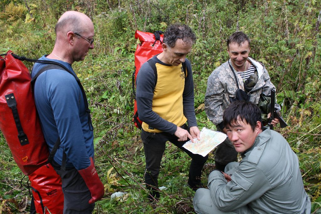 Детально прочитав путевые заметки новосибирских диггеров, изучив карты и планы, мы все-же решили обратиться к первоисточнику, а именно к людям, кто собственно тех самых диггеров туда и довел. Константин Першин и Степан Карнаух – давние друзья Алтайского заповедника и им, в том числе, принадлежит право открытия миру «Большой Медведицы». Они охотно поделились своими соображениями насчет нашего похода, и путем обсуждений вырисовался вполне четкий план действий и маршрут. Степан Карнаух посоветовал также взять в качестве проводника местного жителя – Александра. За это ему отдельное спасибо – «дядя Саша» оказался тонким знатоком лесных тропок, настоящим таёжником и Мужиком. С таким проводником, даже если захочешь пропасть – не выйдет!