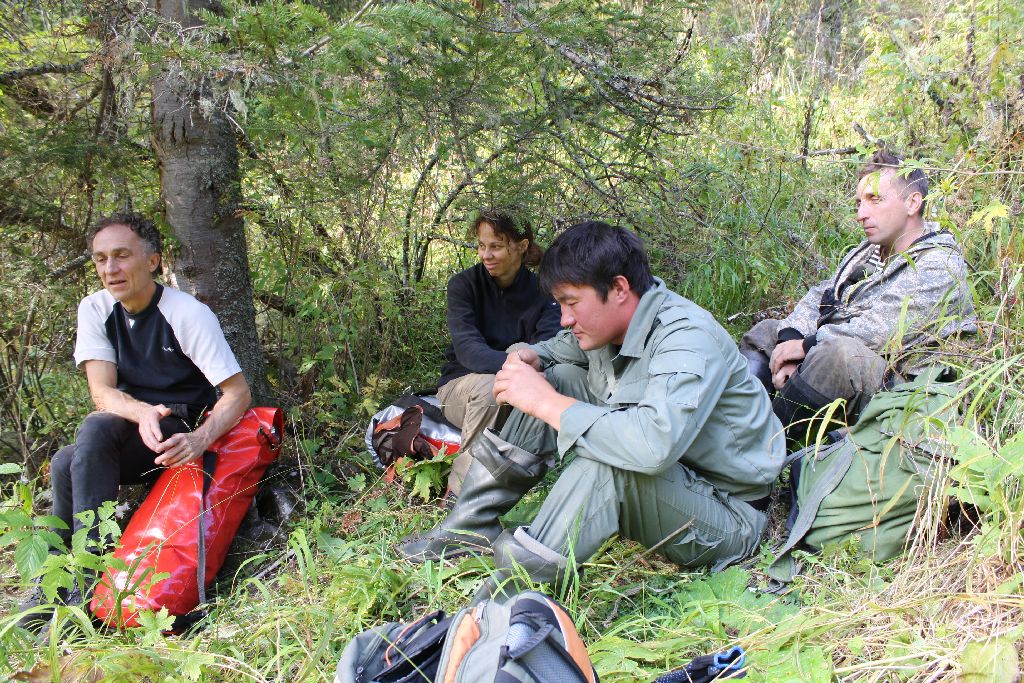 Проводник дядя Саша был укомплектован топором и двустволкой. Его внушительный вид вызывал уважение и легкий страх. Пришлось пояснить словенским коллегам, что расстреливать отстающих дядя Саша не будет, а ружье необходимо для безопасности в кишащей медведями тайге.