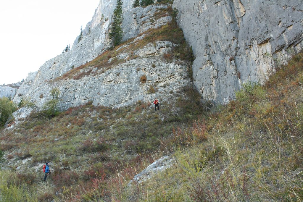 Из-за этого утеса мы выползли в месте предполагаемого местонахождения пещеры.