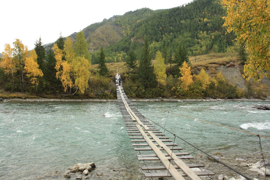 Но вскоре небо подернулось облачной дымкой. Медитация закончилась. По раскачивающемуся подвесному мостику мы перешли на левый берег Чуи.
