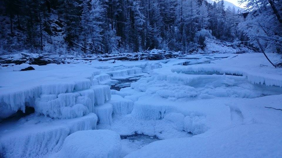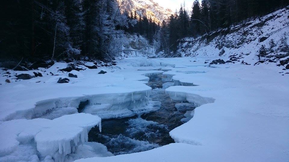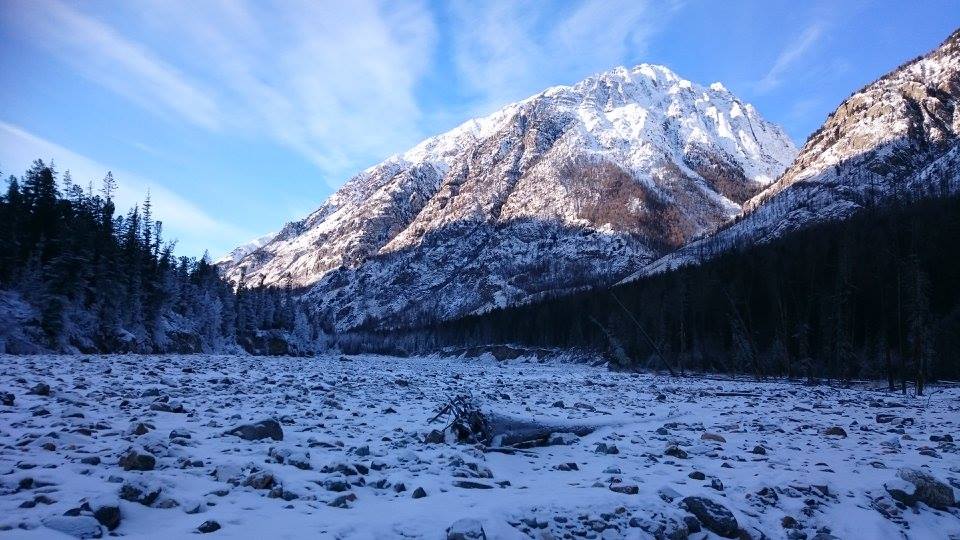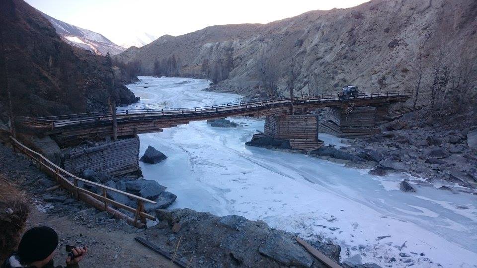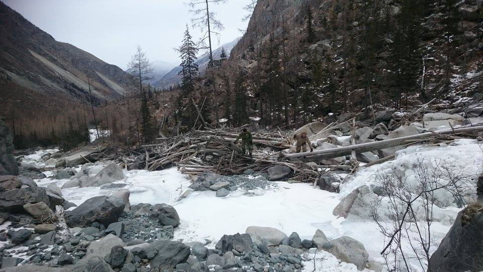 А это морозный Карагем. Незадолго до нас здесь прошел кадир (водно-ледовый сель). Он снес весь лед. Пробираться приходится по одному из берегов - зимой вброд эту речку не перейдешь!
