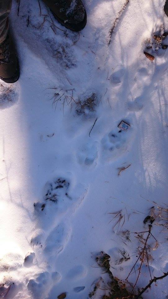 На нашу радость еще один свежий след барса - большого кота! И он идет навстречу нашей фотоловушке!
