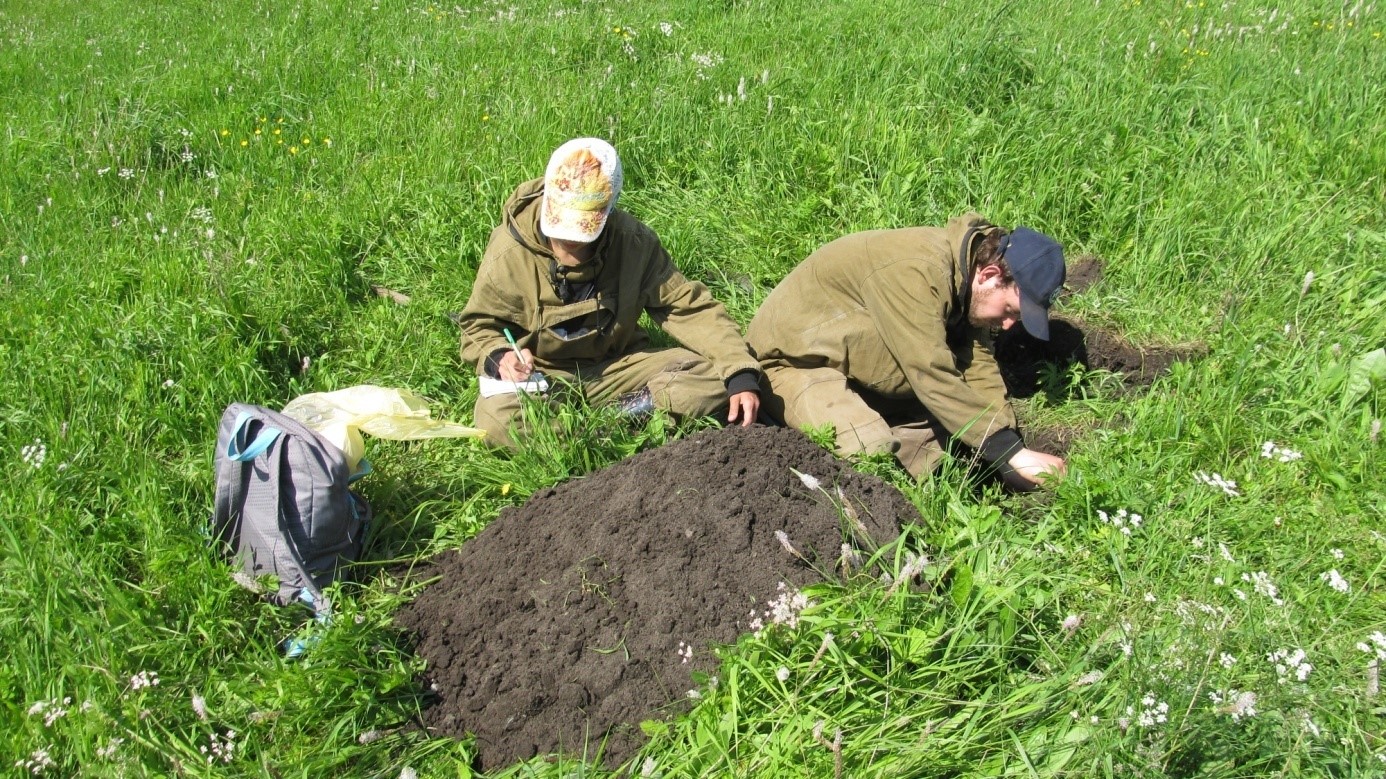 *Для изучения и определения почв в природе, установления границ между различными почвами, взятия образцов для анализов закладывают специальные выемки, которые принято называть почвенными разрезами. Они бывают трех типов; полные (основные) разрезы, полуямы (контрольные), прикопки (поверхностные). В исследованиях почв Алтайского биосферного заповедника был выбран оптимальный и не наносящий вреда природным объектам метод прикопки, или мелких поверхностных разрезов глубиною менее 75 см, которые служат главным образом для уточнения почвенных границ. Кроме того, в ходе работ описываются основные характеристики почв: структура, плотность, включения, новообразования. После завершения полевых работ, площадка приводится к ее первоначальному состоянию, вынутая почва возвращается обратно, утрамбовывается и покрывается снятым дерном.