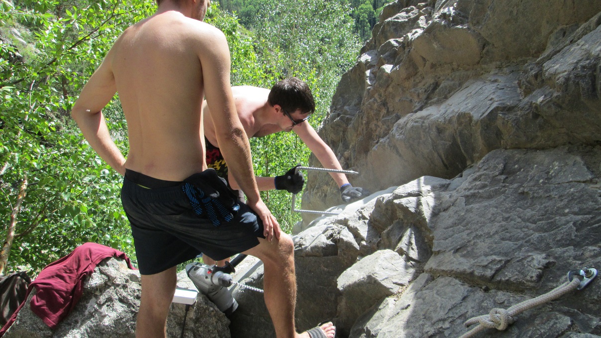 Так как люди тут собрались упорные и дело свое знающие, то пропажа не омрачила общего настроя. Засверлиться в скалу и установить новый крепеж – да запросто!