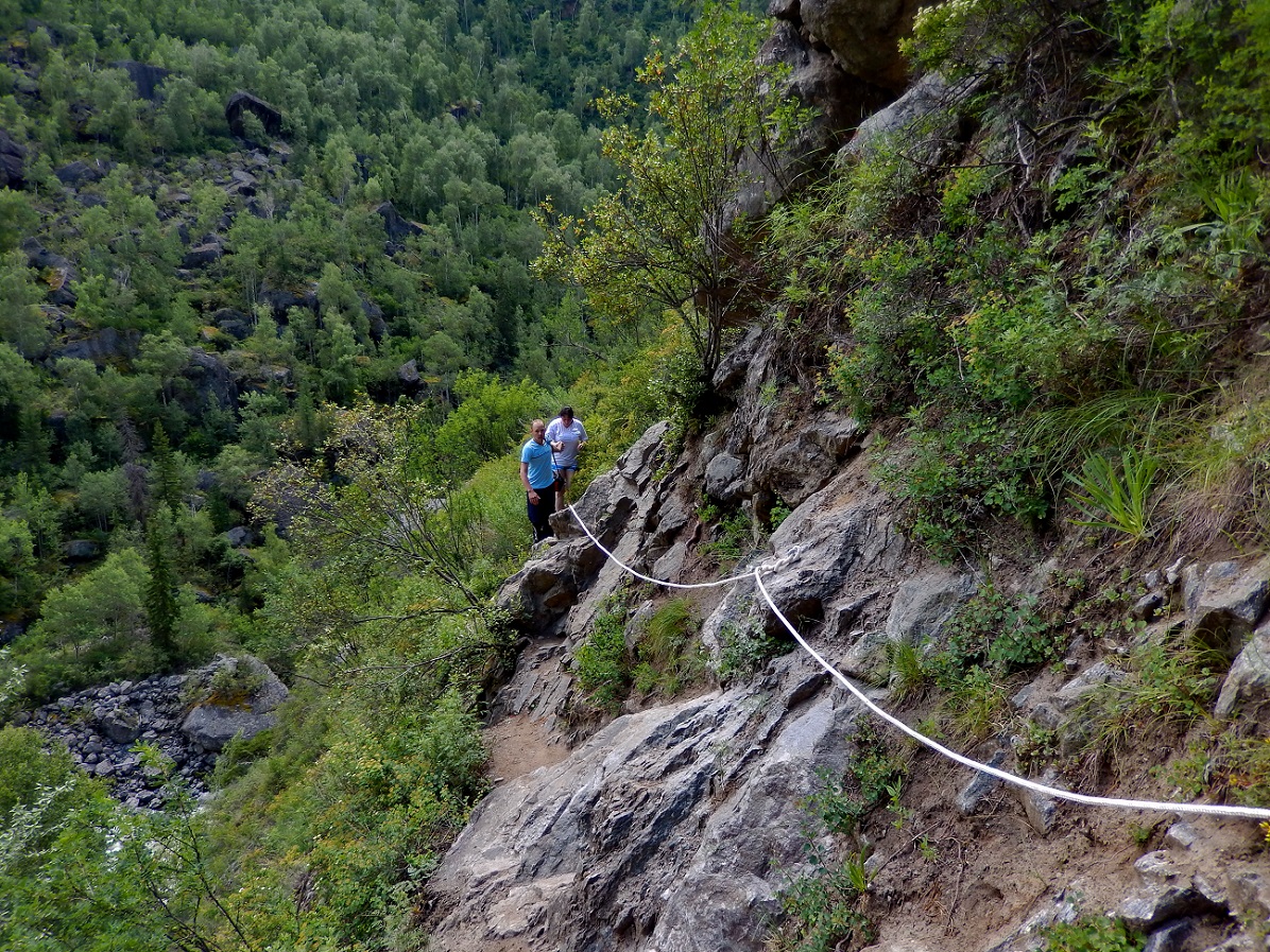 Госинспекторы трудились над установкой КПП, а альпинисты - бравые ребята сверлили дырки в скале чтоб навешать дополнительных страховочных веревок.