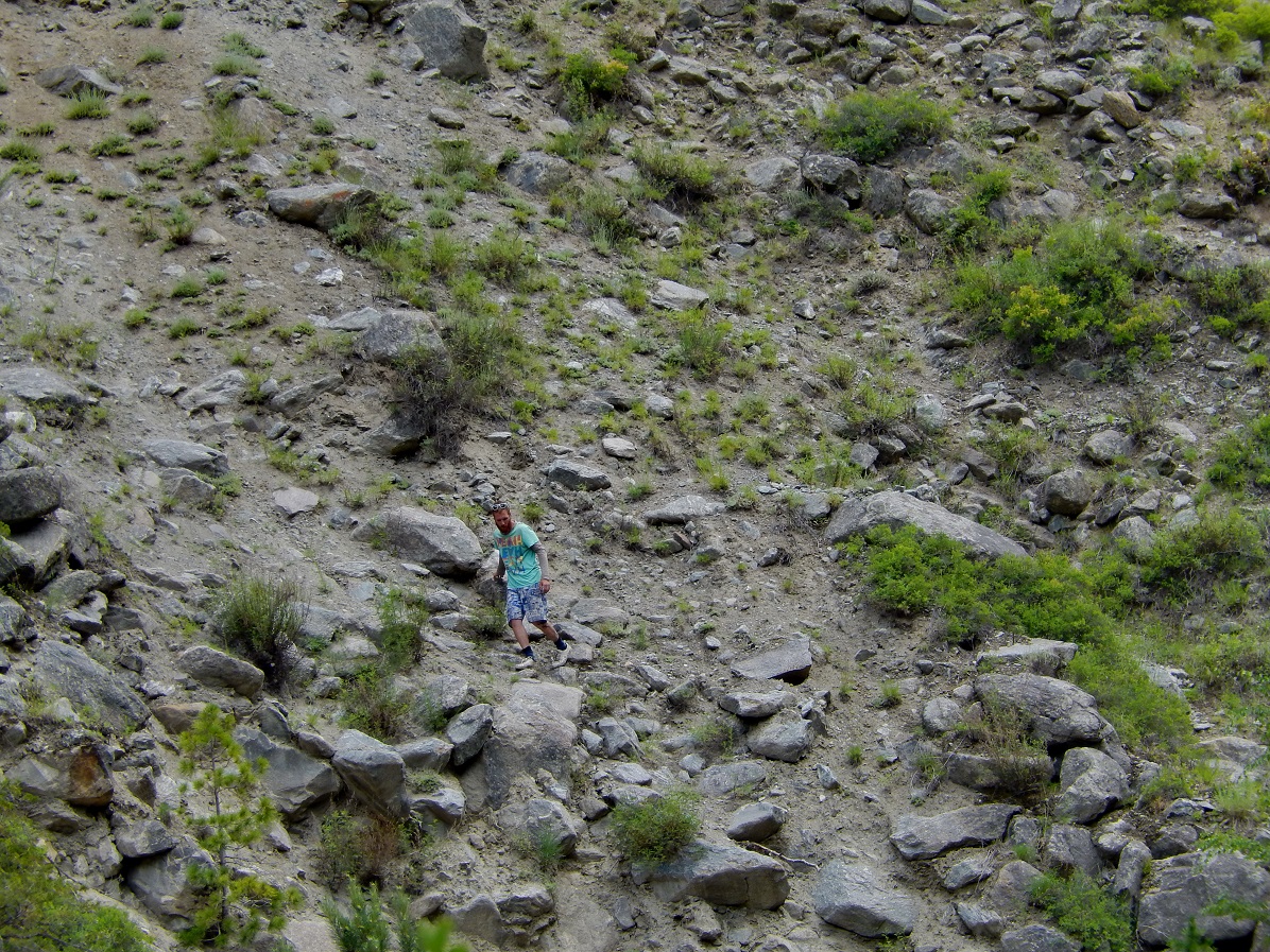 Долина реки Чульча узкая с крутыми склонами. Вероятность камнепада тут очень высока и каждый сезон выявляются камни которые вот-вот полетят вниз. Разумеется во время оборки склонов, проход по тропе перекрывается с обеих сторон.