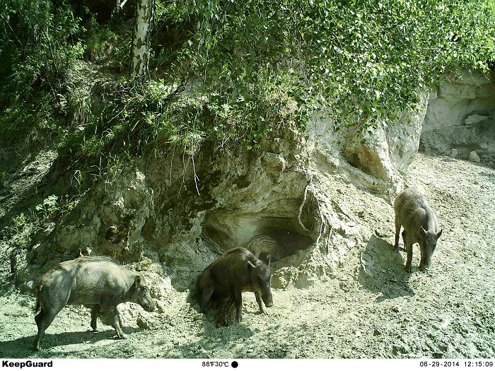 Во влажных заболоченных местах, около родников, ручьев свиньи часто устраивают «купалки» - выбитые в грязи небольшие ямки. Поблизости почти всегда можно увидеть и дерево, о которое звери трутся после купания. На высоте 70-80 см ствол дерева перепачкан грязью, вытерт, кора в этом месте нередко содрана клыками.