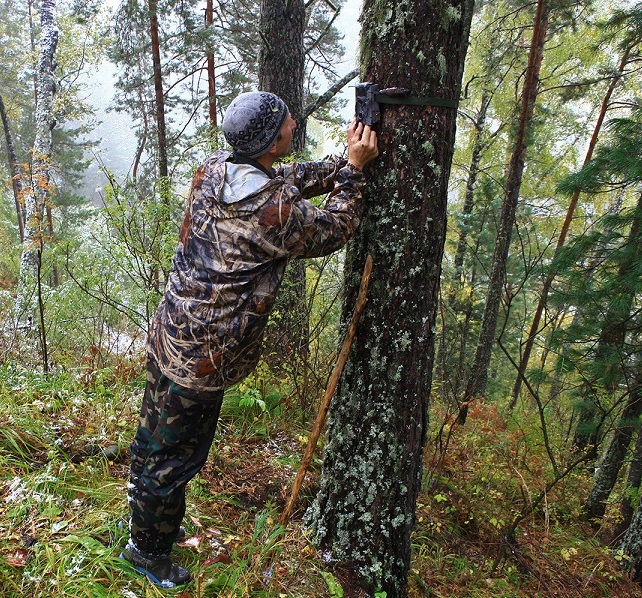 Камеры автоматичсеких фоторегистраторов установлены научным сотрудником Алтайского заповедника Юрием Калинкиным