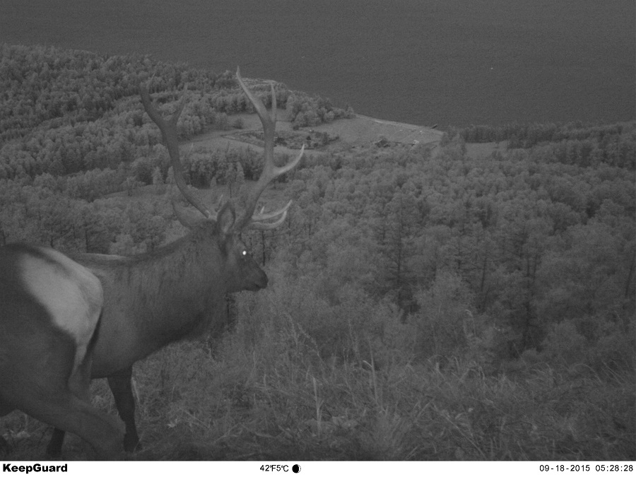 Марал у камеры, установленной недалеко от заповедного кордона.