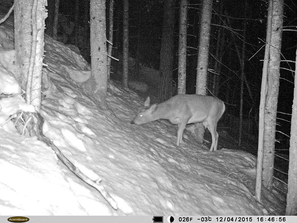 Передвигаться по территории Алтайского заповедника в зимнее время очень сложно, но неизменные помощники сотрудников заповедника - фоторегистраторы остаются на посту в любую погоду в местах наиболее вероятных проходов зверей.