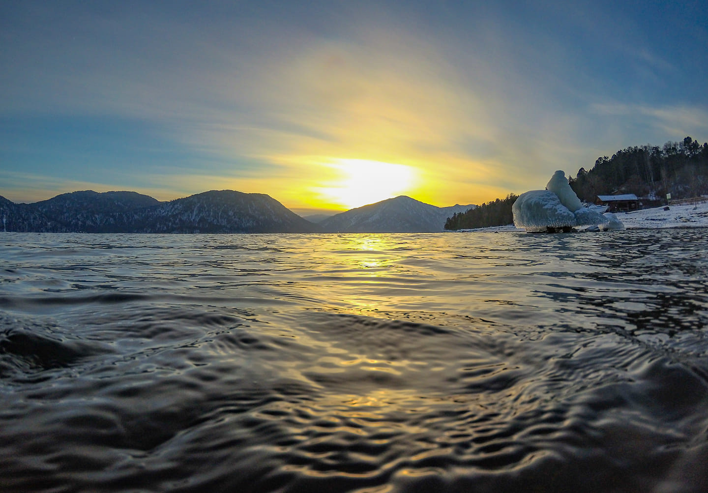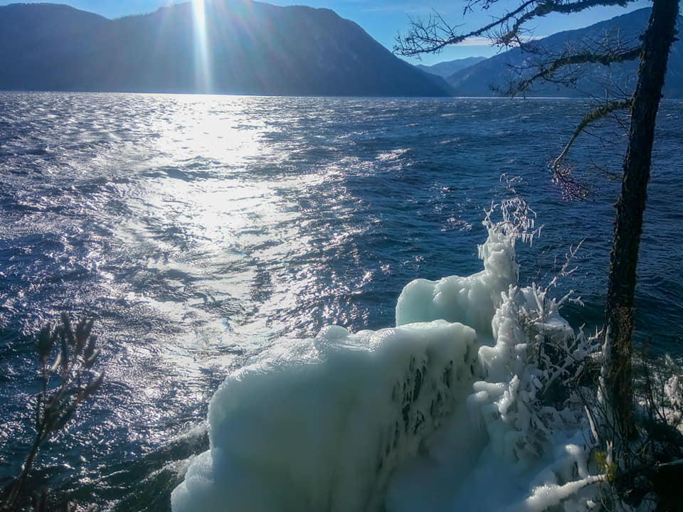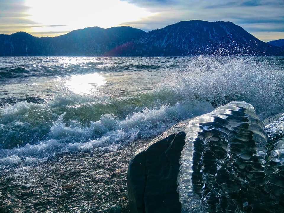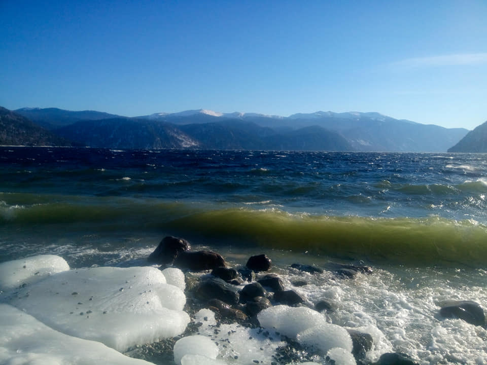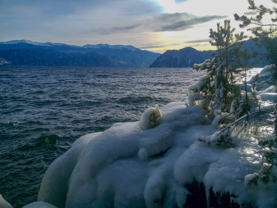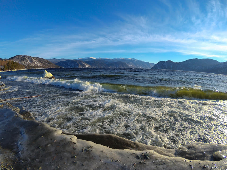 8 января яркое, почти весеннее солнце заливало долину Телецкого с утра до вечера, постепенно начала стихать верховка, но волны все ещё неистово накатывались на берег и разбивались в бесчисленные хрустальные брызги.
