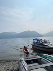 Недалеко от речки Б.Кобукту, на восточном берегу Телецкого озера, есть маленький галечный пляж, практически единственное место, где можно безопасно для лодки пристать к берегу среди каменистых неприветливых берегов.