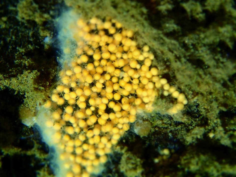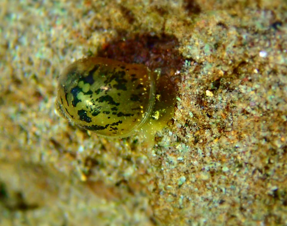 Altai Biosphere Reserve. Microcosmos of Lake Teletskoye. Underwater area of Yailu settlement, depth 6-12 m, 30 October 2017 1:00, water temperature + 6С. Limnea auriculata.