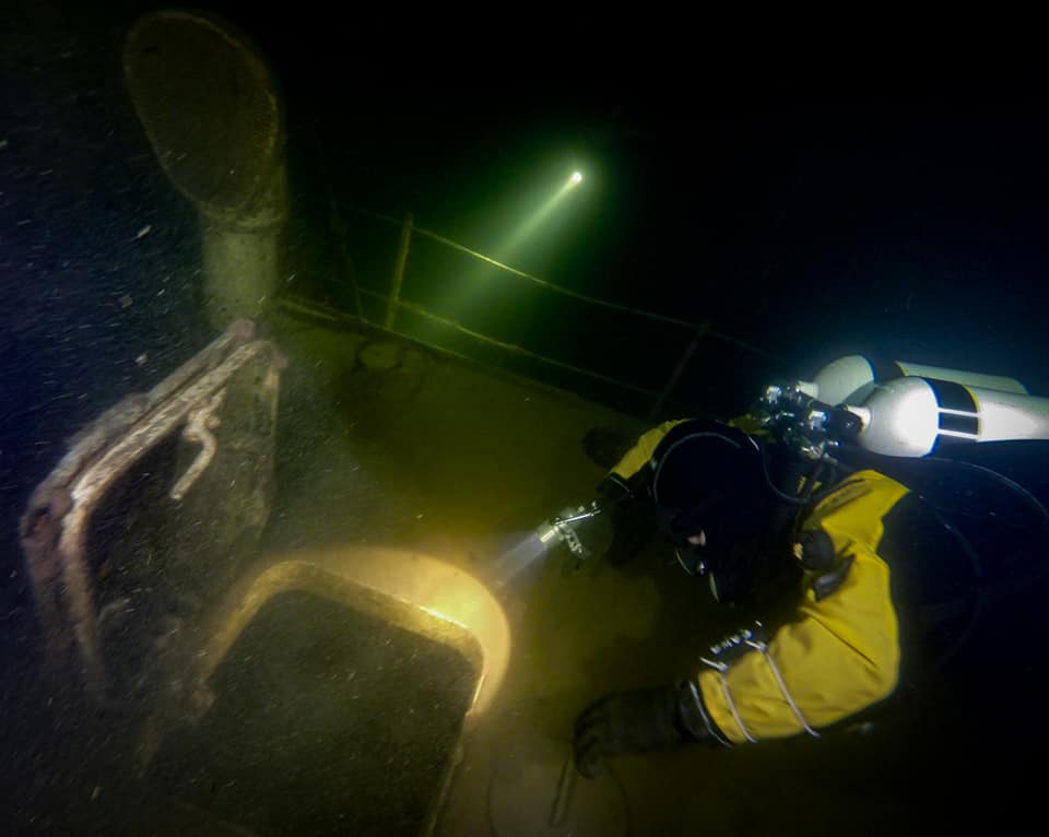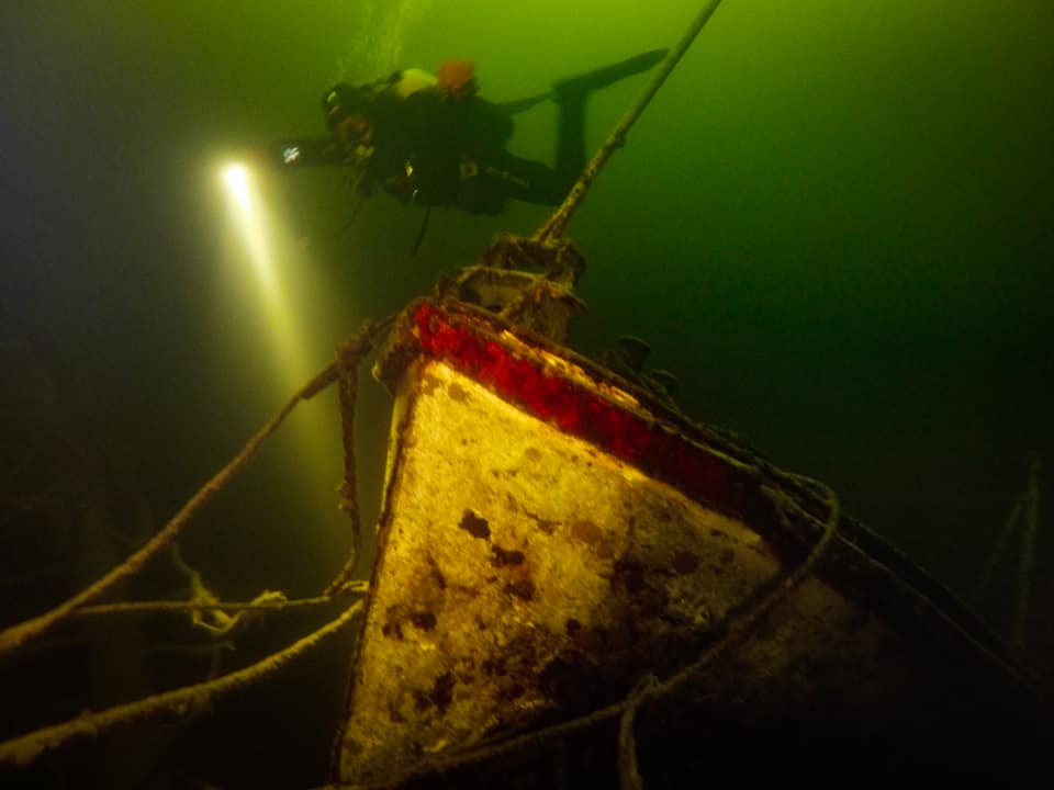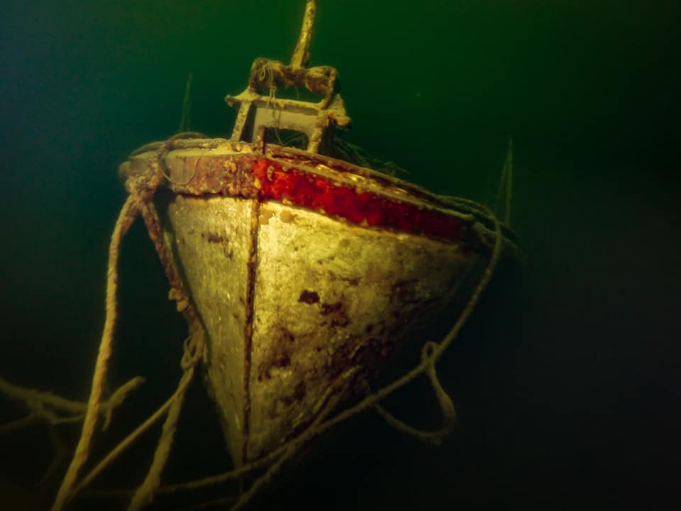 Все ещё тёплая вода (+9 без термоклина) и относительно хорошая для этого места видимость (около 5 м), порадовала и позволила провести за обследованием катера больше часа, отснять видеоматериал для фильма об Алтайском заповеднике.