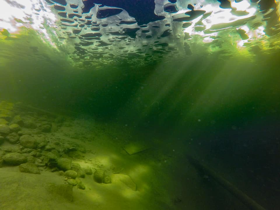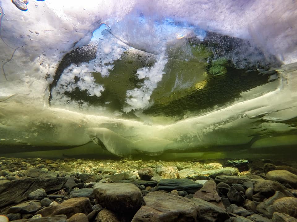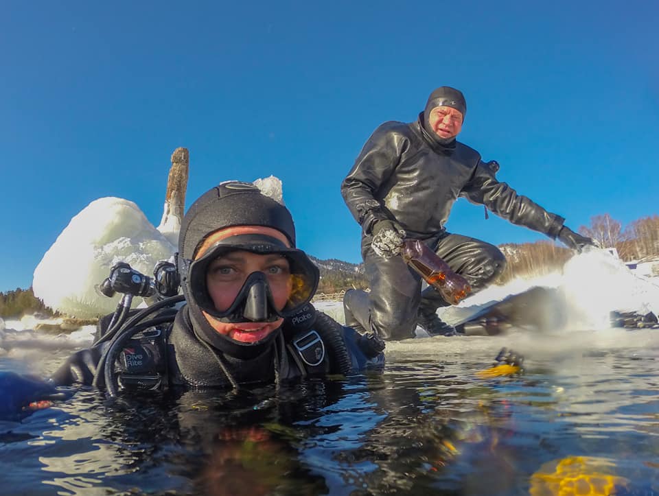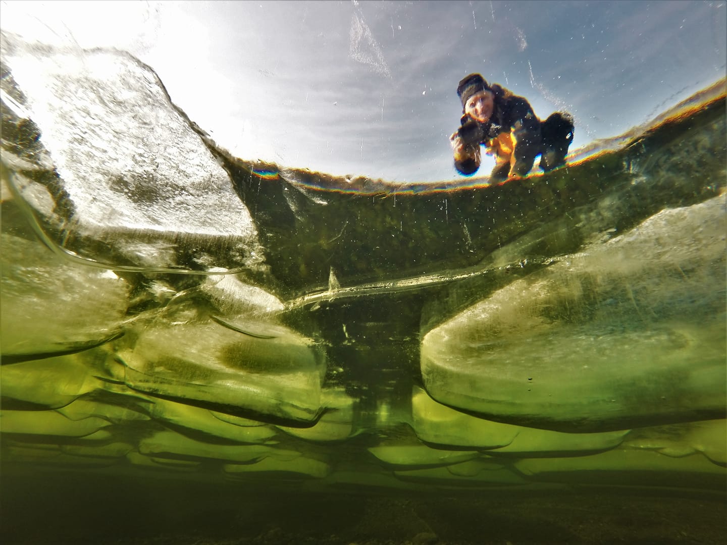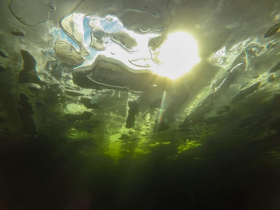 On a sunny day, the ice of the Golden Lake played with all shades of green, yellow and gray shimmering in the rays of the bright February sun. Despite the extreme temperature of water of 0.4C, and the frequent transition of the regulators to the "freeflow" it was a great dive.