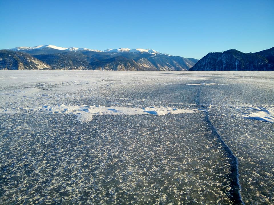 Алтайский биосферный заповедник. Поселок Яйлю. По обе стороны льда. 10.02.2018.