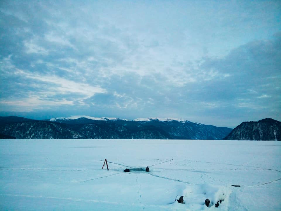 Despite the snow, still covering the village and Teletskoye lake, spring is already here. The birds are singing, the streams flow from the roofs, and a layer of water appeared on the ice. Now the ice thickness is more than 50 cm and its structure is like layered pie. Due to the dense snow under the ice, even in clear sunny weather, the dark reigns, and because of thawed water, which is already actively entering the lake, the visibility at the first 5-7 meters decreased and llusion of fog under the water appeared. But as deeper than 15-20 meters, as always, the crystal clear Altyn-Kölle blackness is invariably. Another delightful day in the world's best office!
