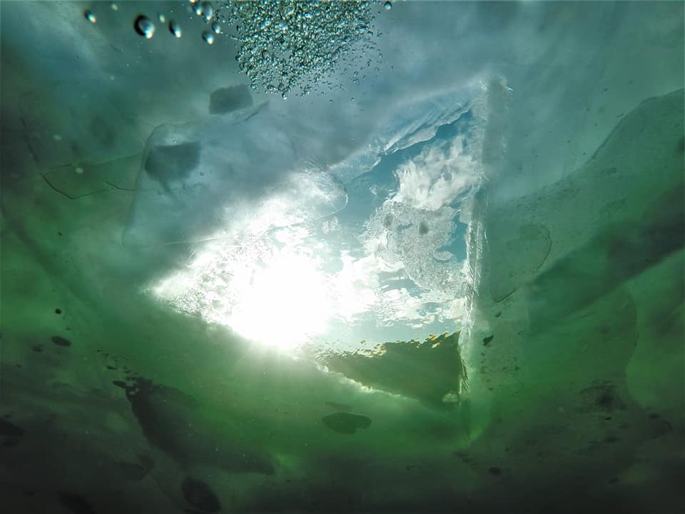 Алтайский биосферный заповедник. Роман Воробьёв сообщает, что портал в параллельный мир Золотого озера снова открыт... - Температура воды +0,2С, по привычную сторону реальности +7С Несмотря на снег, плотно все ещё плотно укрывающий заповедный поселок Яйлю и Телецкое, весна уже здесь. Поют птицы, текут ручьи с крыш, и на льду появился слой воды. Потратив несколько часов на вскрытие майны обнаружили, что толщина льда более 50 см и его структура напоминает слоеный пирог и плотной прозрачной внутренней части и нескольких слоев рыхлого непрозрачного льда. За счёт плотного снега подо льдом даже в ясную солнечную погоду царит полумрак, а из-за талой воды, уже активно поступающей в озеро видимость на первых 5-7 метрах заметно уменьшилась и появилась иллюзия тумана под вод водой. Но как глубже 15-20 метров как всегда неизменно кристально прозрачная чернота Алтын-Кёля. Ещё один восхитительный день в лучшем в мире офисе! Фото Романа Воробьева и Татьяны Клименко Altai Biosphere Reserve. Window to the parallel world of the Golden Lake is open again ... 03/15/2018. The temperature of water + 0.2C, at usual side of reality + 7C.