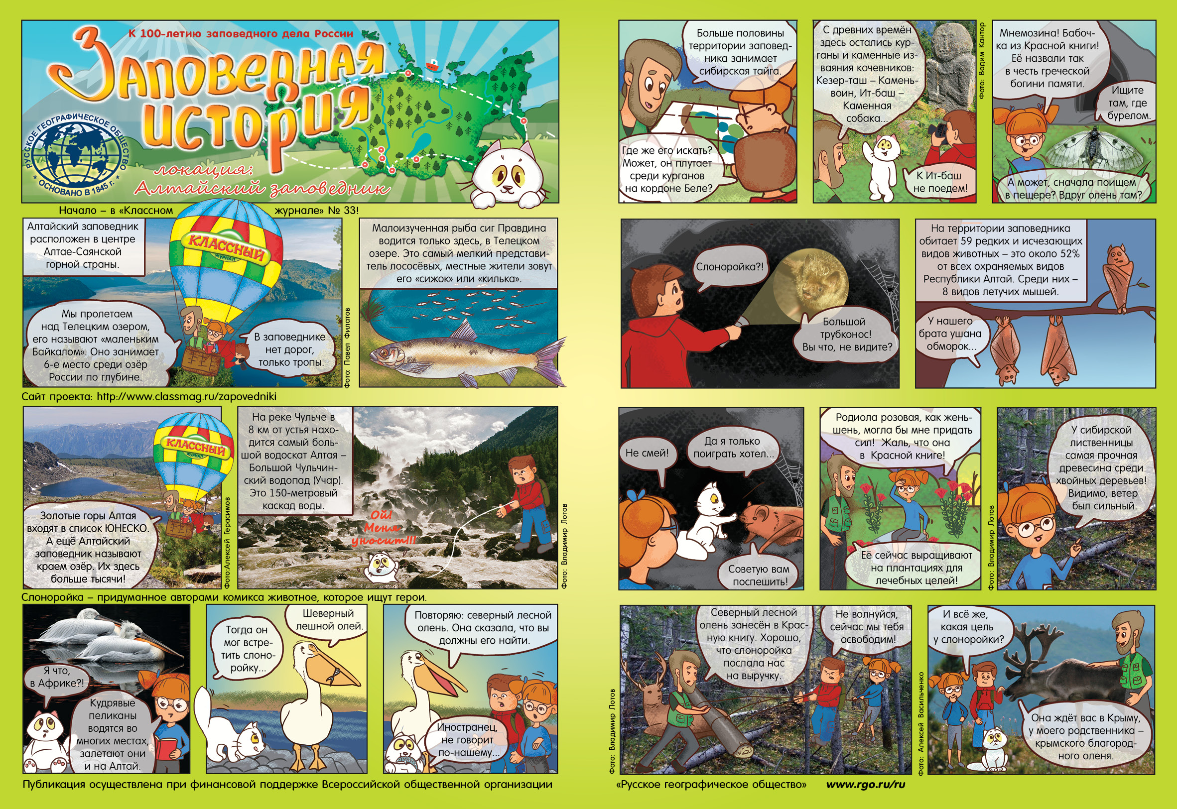 В очередном выпуске «Заповедных историй» герои детского комикса продолжили свои поиски, которые привели их на территорию Алтайского заповедника. Что они увидели и нашли в Алтайском заповеднике? О чём рассказали ребятам, следящим за их путешествием на страницах «Классного журнала»? Читать.