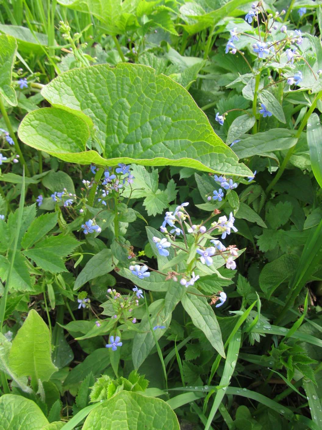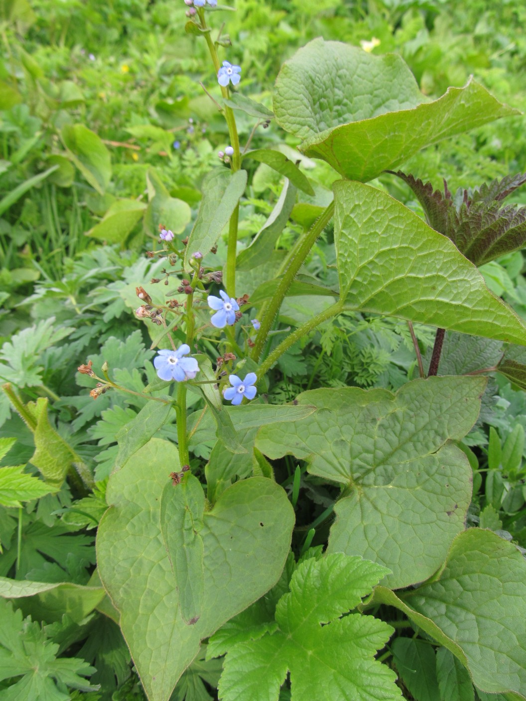 На кордоне Байгазан тоже произрастает бруннера сибирская (Brunnera sibirica). Это многолетнее растение рода семейства Бурачниковые (Boraginaceae). Бруннера – неприхотливое, зимостойкое растение, хорошо растёт в густой тени и на открытых местах. Вид внесён со статусом «редкие» в сводку - «Редкие и исчезающие растения Сибири», растение относится к Алтае-Саянским эндемикам(4).