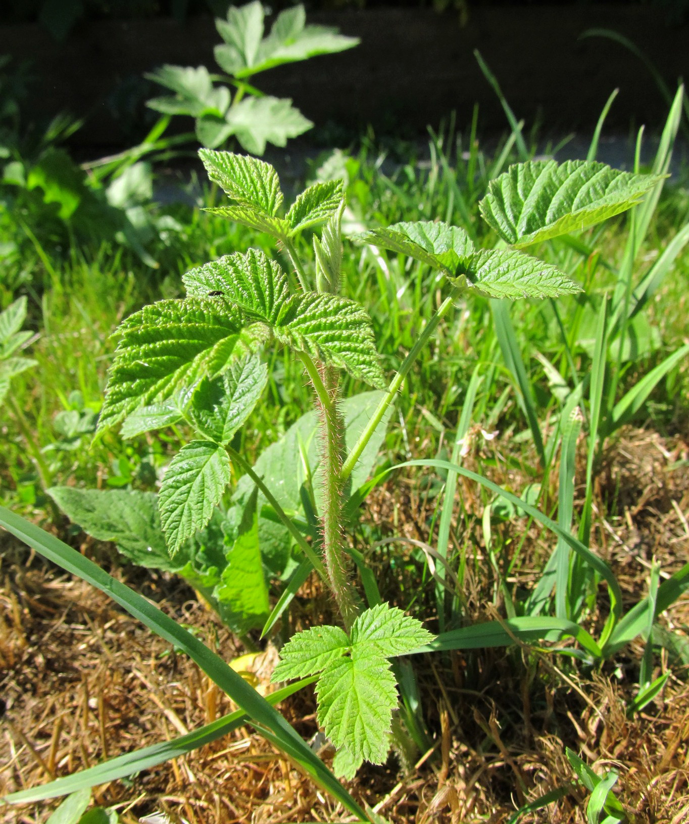 Мали́на обыкнове́нная (лат. Rúbus idáeus L.) – вид рода Малина (Rubus) семейства Розовые (Rosaceae). Малина – это многолетнее растение с очень развитым и извилистым корневищем, на котором образуется множество придаточных корней. Надземные побеги прямостоячие, высотой от 1,5 до 2,5 метров, в первый год вегетации зеленые, с едва заметным сизоватым налетом, покрытые тоненькими шипами. Ко второму году жизни побеги малины деревенеют, приобретая ярко-коричневый цвет.