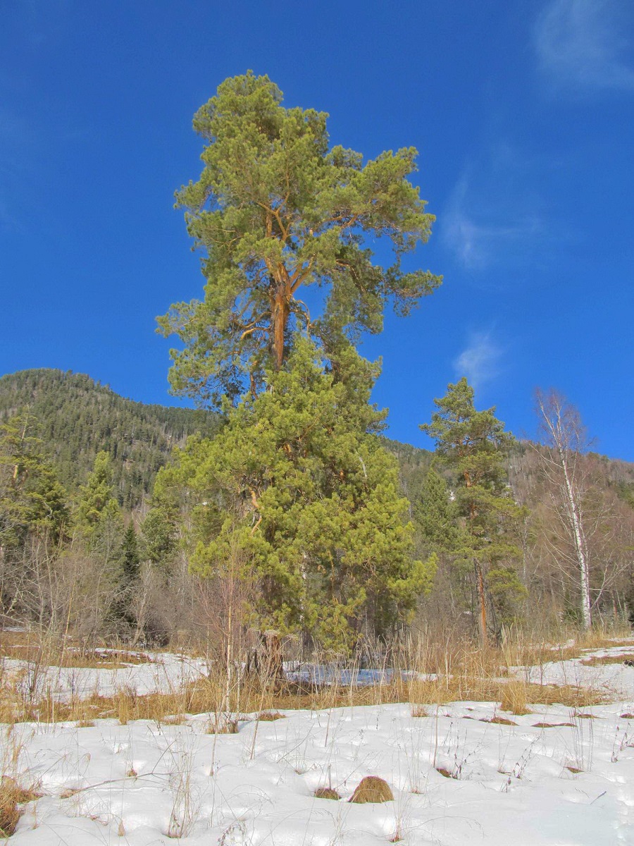 Сосна обыкновенная на поляне в окрестностях кордона Байгазан.