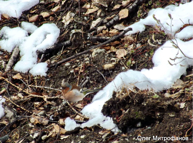 Все еще встречаются на террасе отдельные особи зимующих видов (свиристель Bombycilla garullus, сойка Garullus glandarius, рябинник и урагус Uragus sibiricus);