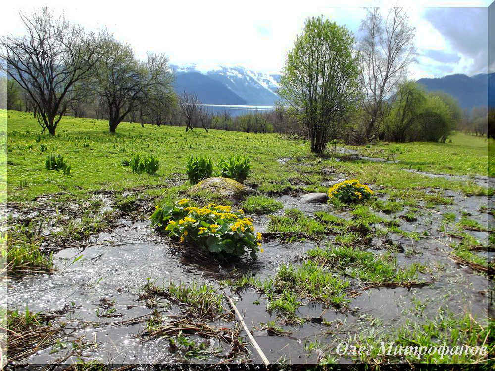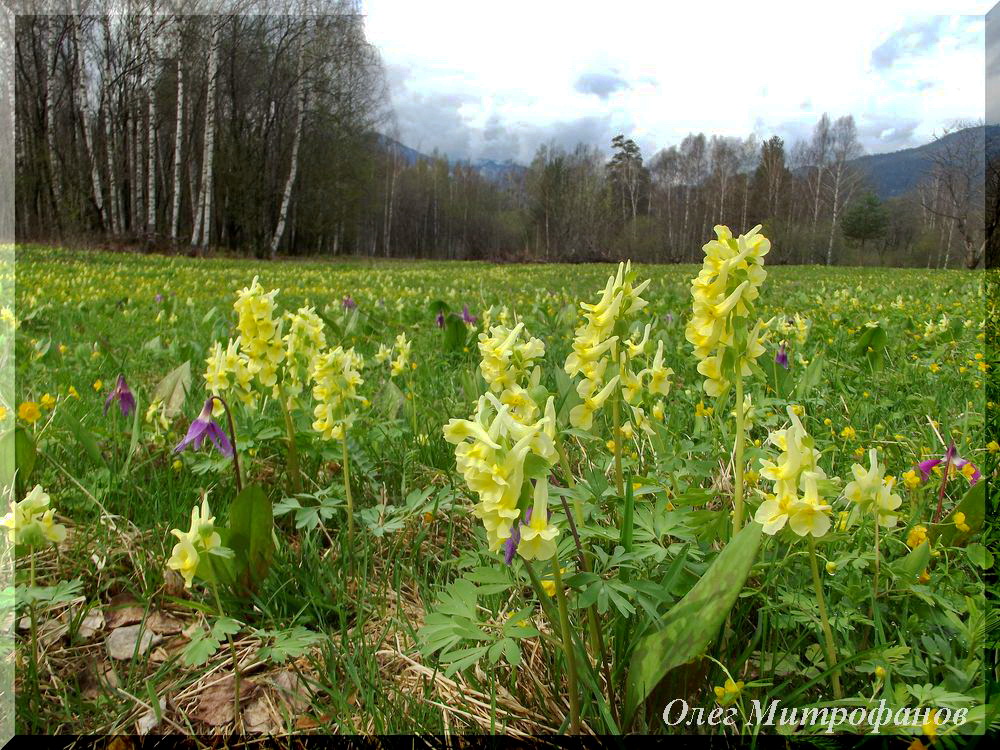 Затем весна от розовой гаммы, постепенно перешла к солнечно-желтой из лютиков sp., хохлатки сибирской (Corydalis sibirica), калужницы болотной (Caltha palustris) и фиалки одноцветковой (Viola uniflora).