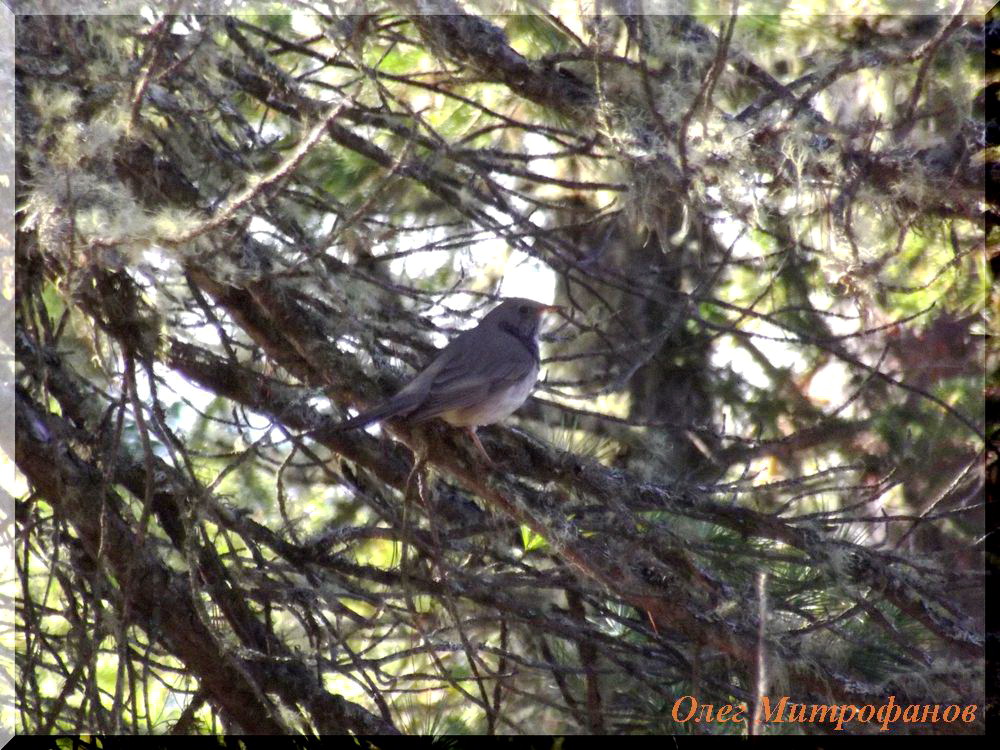 Самец чернозобого дрозда (Turdus atrogularis) на своём гнездовом участке