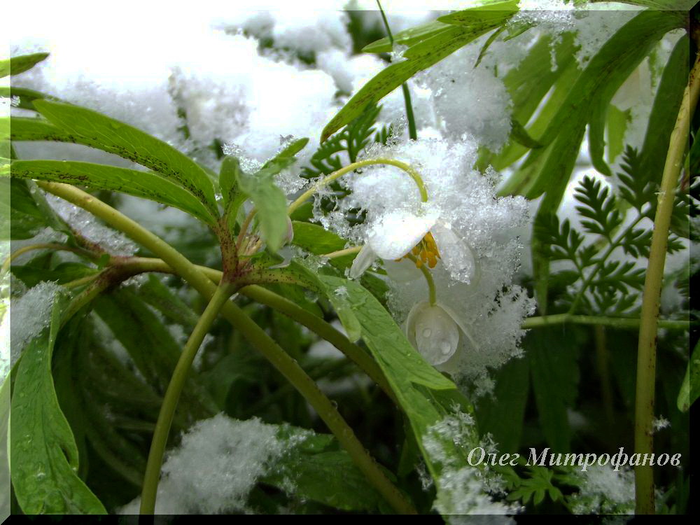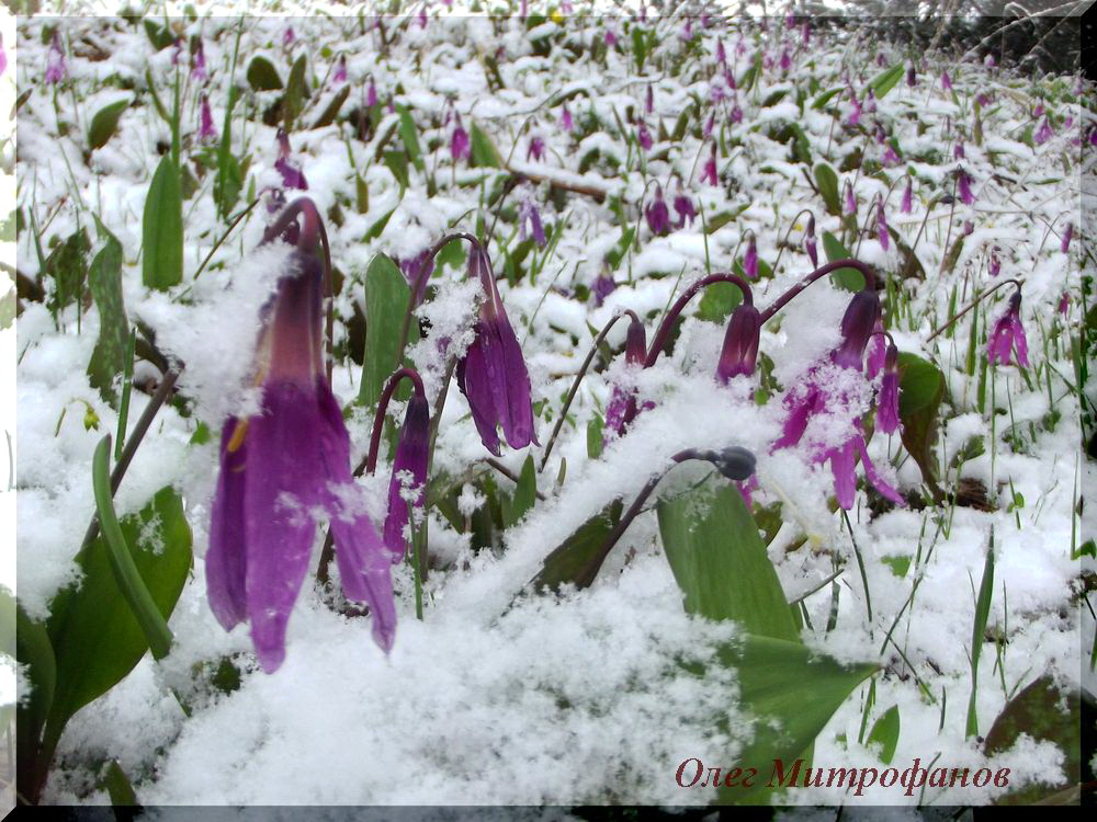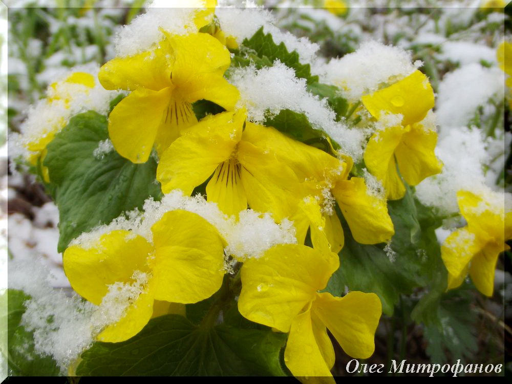 Фиалки одноцветковые занесены снегом
