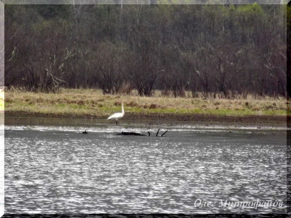 Одиночный лебедь-кликун в Камгинском заливе.