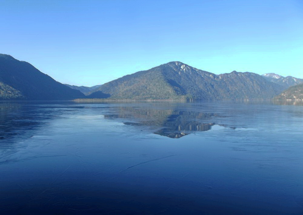 Молодой лёд в мае на Телецком озере.