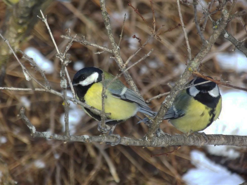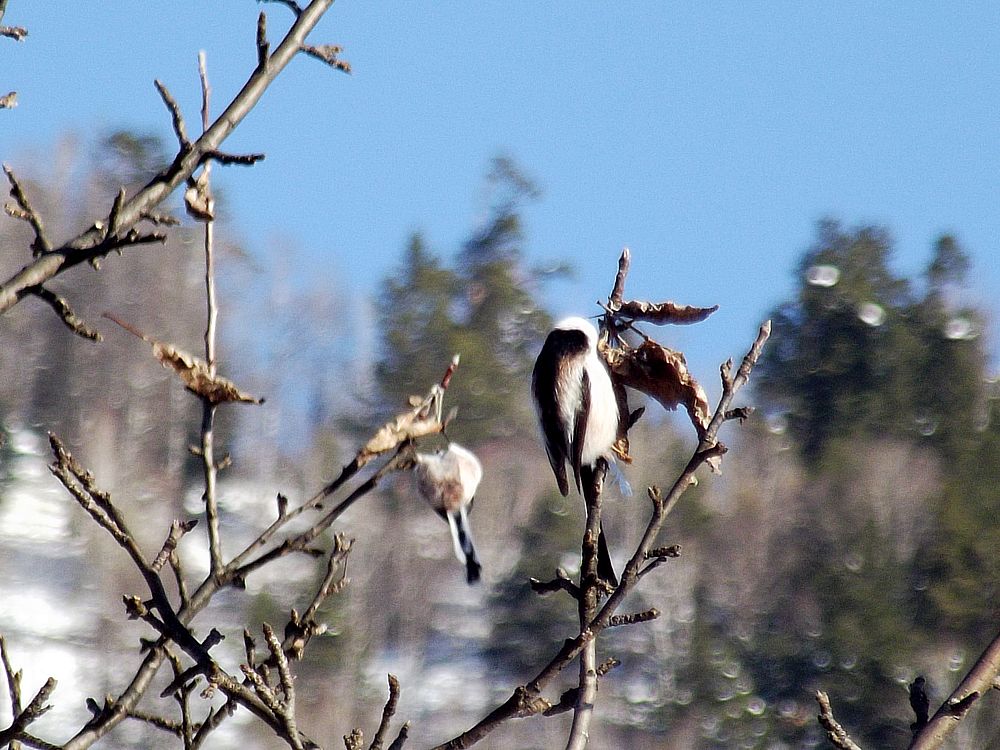 Все, встреченные на маршруте виды синиц: длиннохвостая синица (Aegithalos caudatus), пухляк, московка и большая синица (Parus montanus, P. ater и P. major) уже разбились на пары и самцы звонкой песней обозначали свой гнездовой участок.
