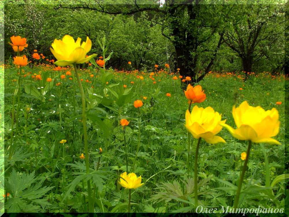 уже вовсю цветет купальница азиатская; в общей массе цветущих огоньков иногда можно встретить желтую морфу** этого цветка;