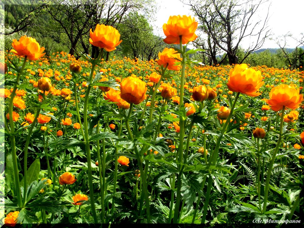 В растительном царстве идет массовое цветение огоньков (Trollius asiaticus), отцветают кандыки (Erythronium sibiricum), цветет пион уклоняющийся или Марьин корень (Paeonia anomala), брунера сибирская (Brunnera sibirica) и купена душистая (Polygonatum odoratum); в садах зацвели яблони (Malus domestica).
