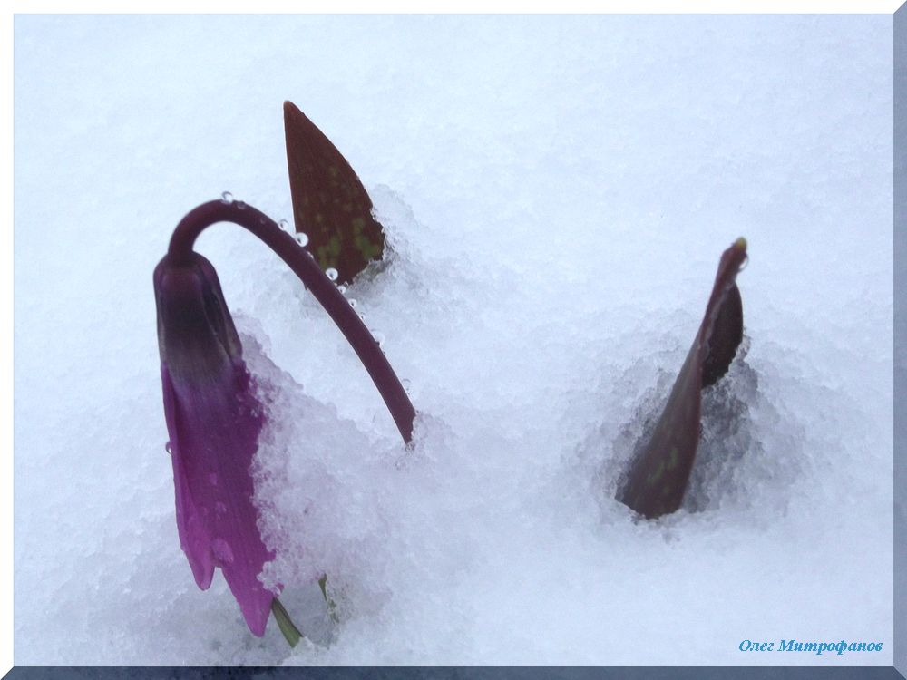 Кандык сибирский, занесенный снегом.