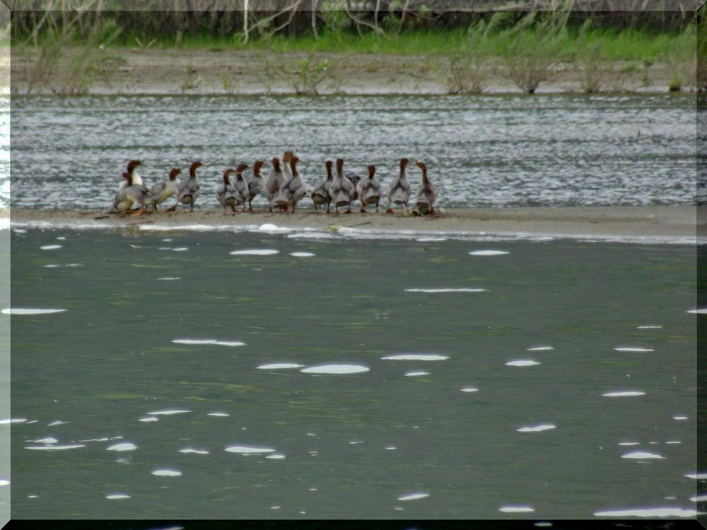 большого крохаля (Mergus merganser). У кряквы были уже летные птенцы, у гоголя разброс был от пятидневных пуховичков до летных птенцов в возрасте 25 дней, у большого крохаля разброс возраста птенцов меньше от 10 до 25 дней. Размеры выводка: у кряквы семь, у гоголя от двух до семи и у большого крохаля от пяти до 20-ти птенцов.