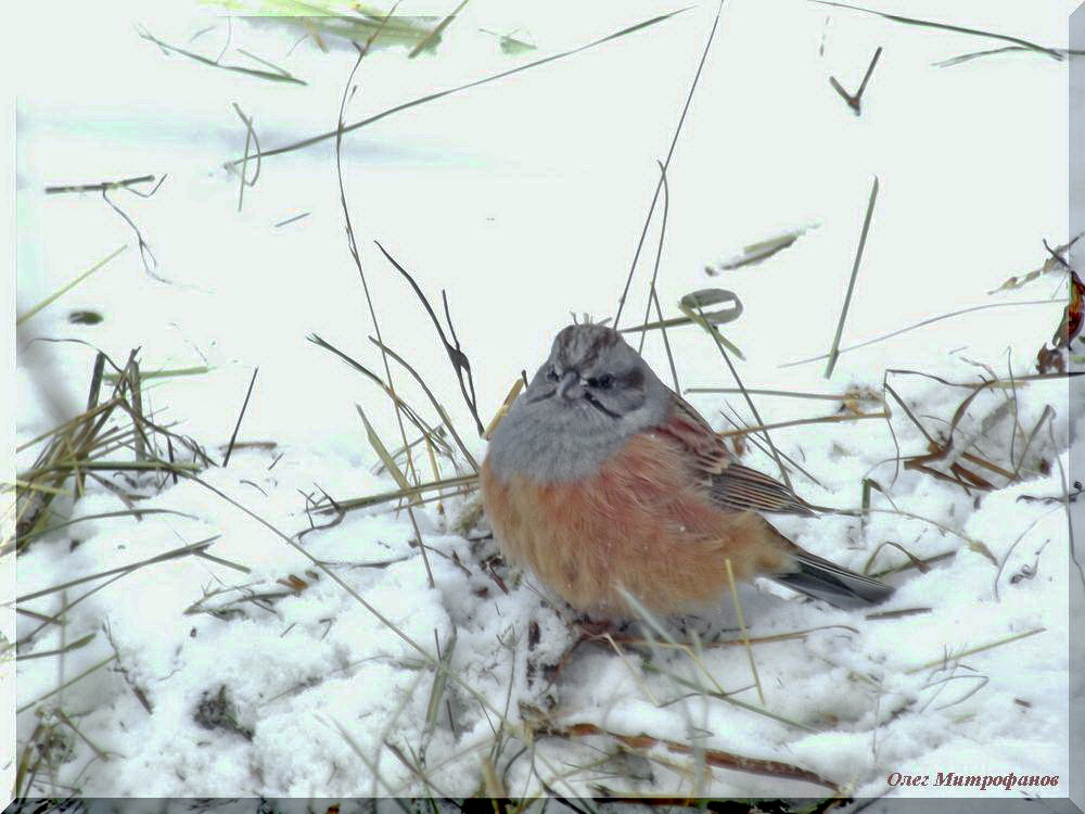 Овсянка Годлевского на снегу.