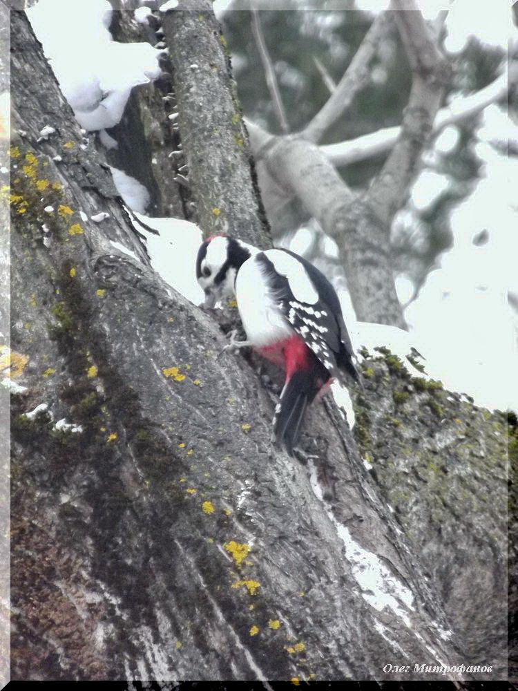 Самец большого пёстрого дятла.