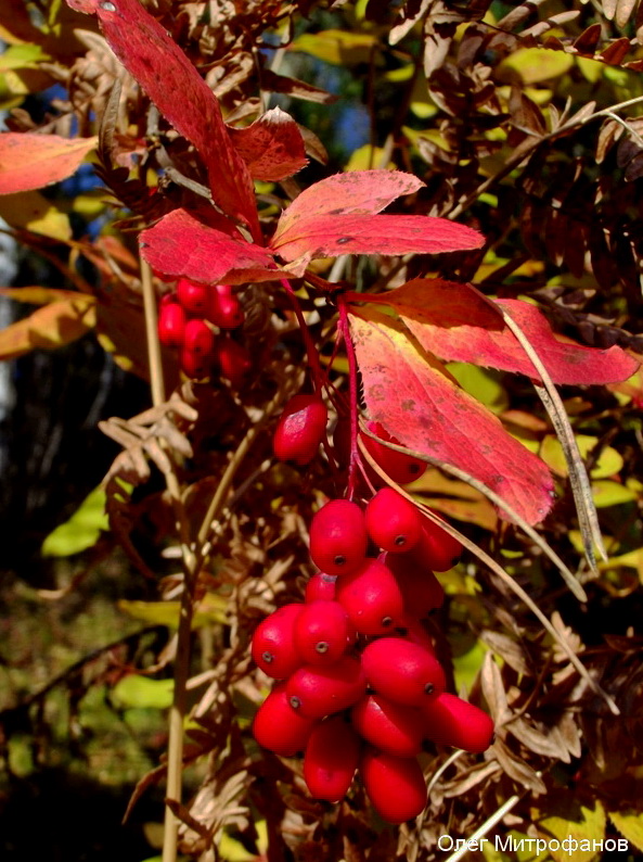 калины Viburnum opulus; а на садовых участках террасы – бросающиеся в глаза свой раскраской листья аронии или черноплодной рябины Aronia melanokarpa.