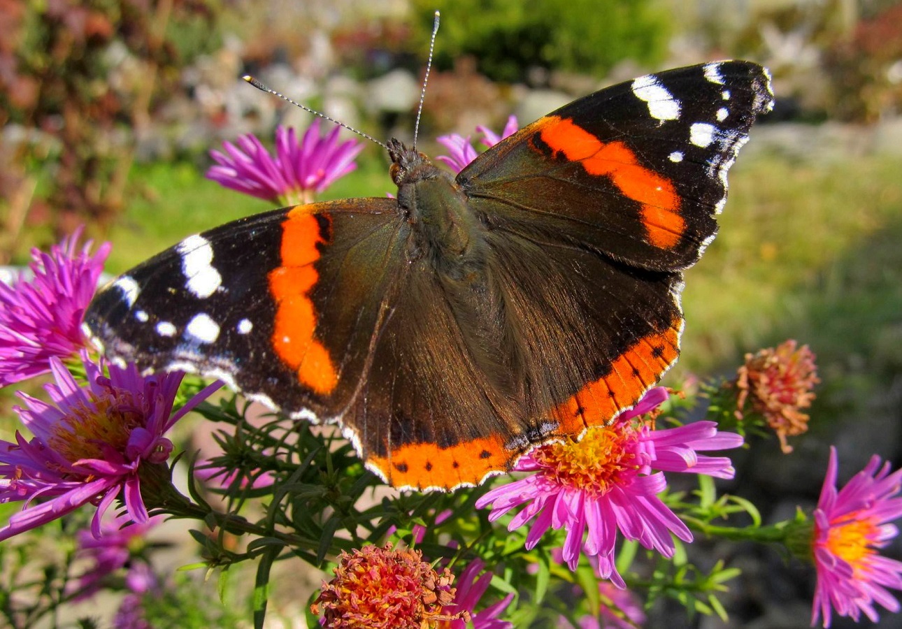 В теплые дни первой половины октября в поселке на одном из приусадебных участков встречена редкая бабочка из рода Pyrameis – адмирал P. atalanta;
