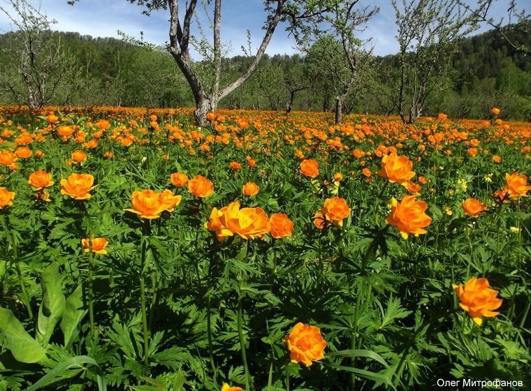 огоньки или купальница азиатская Trollius asiaticus, начала «пылить» сосна лесная Pinus sylvestris, зацвела чина.