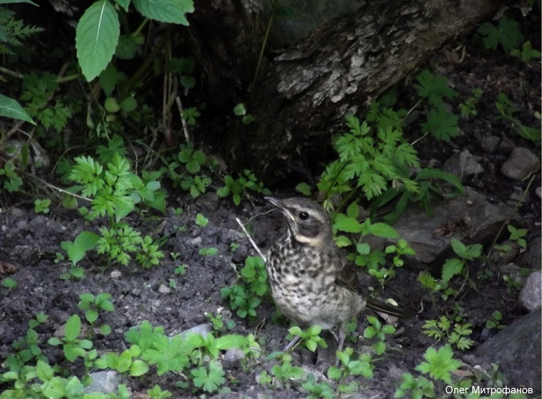 Птенец-слёток дрозда-белобровика.