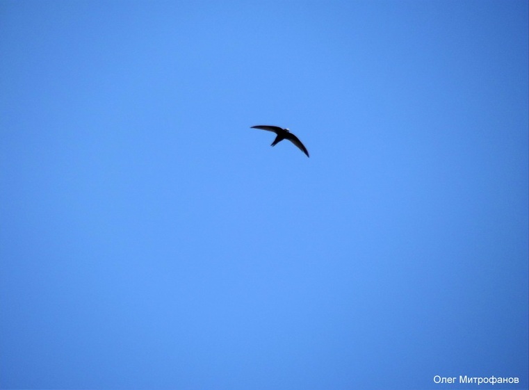 Одиночный чёрный стриж над посёлком Яйлю.