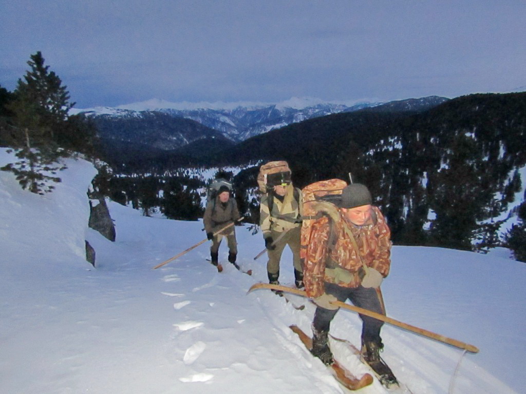 Погода благоприятствовала проведению запланированных работ. Только ветер со снегом несколько затруднил продвижение группы по самому длинному участку маршрута, за день нужно было пройти 30 км и преодолеть 4 высокогорных перевала. Непогода и отсутствие укрытий в обширных тундровых ландшафтах высокогорий не позволяли хорошо отдохнуть, а плохая видимость замедляла продвижение, скрадывала мелкие детали рельефа. Но, тем не менее мы успели к сумеркам добраться до таежной избушки.