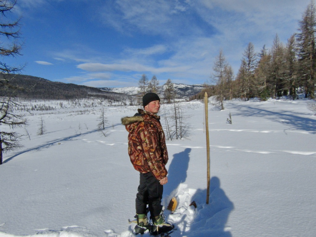 Учет в этом урочище проводится с 2007 года, эта зима здесь не самая сложная для копытных. В 2010 году средняя глубина снега составила на маршруте 85 см, обилие лося – 7 особей, остальных видов копытных не отмечалось. Проведение суточного тропления лося на учетной площади показало, что основу питания лося здесь составляют побеги кедра, карликовых ив и карликовой березки низкой. Марал преимущественно поедает лишайники, кусты жимолости и добывает из-под снега траву.