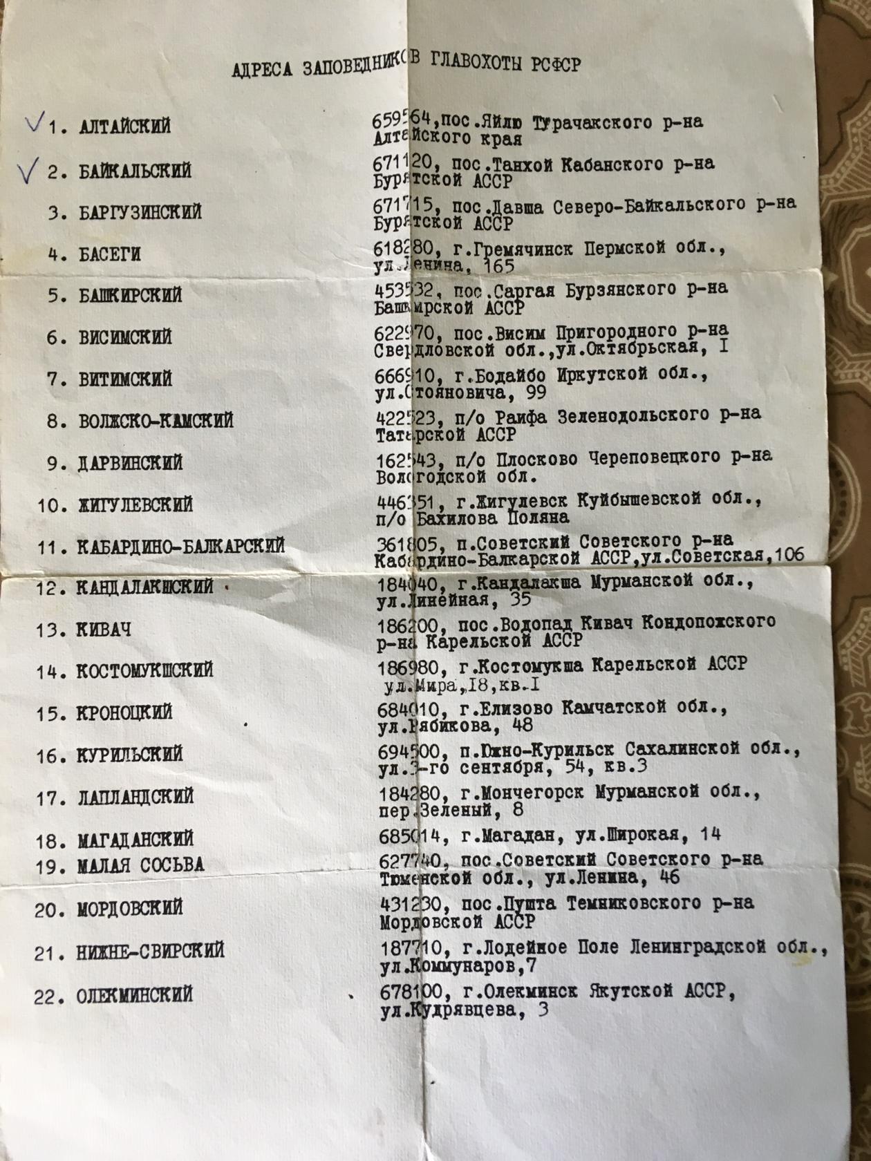 В семье Шамиля Валиевича хранится список с адресами заповедников Главохоты РСФСР, где поставлены галочки напротив адресов заповедников, где он хотел работать. Из всего списка предпочтение было отдано двум заповедникам – Алтайскому и Байкальскому. Первым в списке стоял Алтайский, куда Шамиль приехал с разведкой в 1986 году, чтобы присмотреться к месту внимательнее. Решение стало судьбоносным, вот уже 35 лет Шамиль Сибгатуллин работает в заповеднике.