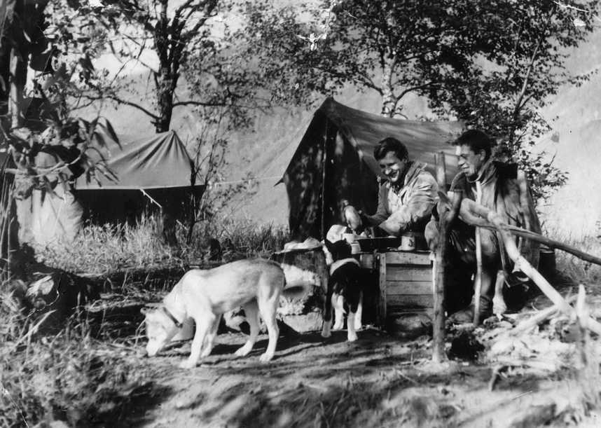 Сотрудники Алтайского заповедника В.В.Баскаков и В.А.Шилов на острове Камаин, 1973 г.