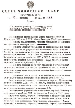 Леса и земли упраздненных заповедников передали Министерству лесного хозяйства СССР – 5441,33 тыс.га, совхозам Министерства совхозов СССР и колхозам – 46,07 тыс.га и в Госземфонд – 4,5 тыс.га с распределением.