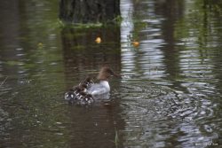 Когда вода подошла к дому по утрам приплывала крохалиха с выводком. Позавтракав мелкой рыбешкой и дождевыми червями, уплывала дальше по своим делам. Съемка велась из окна дома.